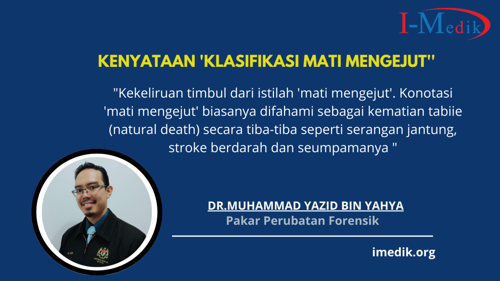 Barangkali kekeliruan timbul dari istilah ‘mati mengejut’. Konotasi ‘mati mengejut’ biasanya difahami sebagai kematian tabiie (natural death) secara tiba-tiba seperti serangan jantung, stroke berdarah dan seumpamanya.
