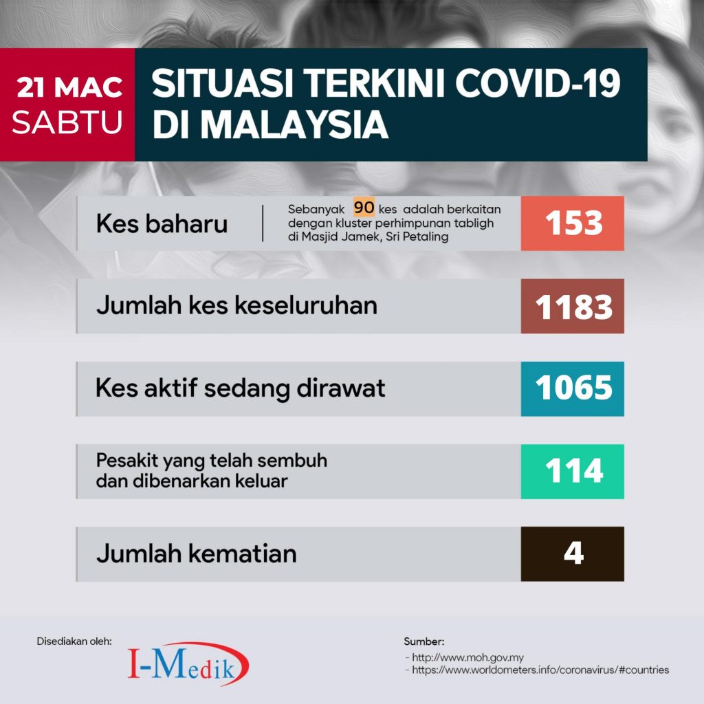 Kes positif baru pada 21 Mac 2020 = 153