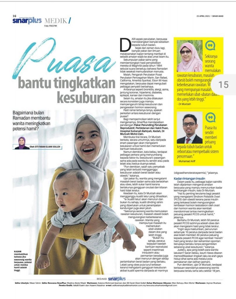oleh: Dr Murizah binti Zain (Pakar Perunding Perubatan Reproduktif Hospital Sultanah Bahiyah & Ahli I-Medik) &